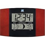 This cherry wood-paneled digital wall clock reports the current time plus indoor and outdoor temperatures and the moon phase. The clock has a built-in antenna system that receives radio signals from the atomic clock, keeping precise time and the accurate date. Time is displayed in hours and minutes and either 12- or 24-hour modes on the top LCD screen while the lower LCD shows the date and day of the week in English, Spanish, German, or French, along with the moon phase (of eight possible phases) and current indoor and outdoor temperatures. The clock has an alarm with a snooze option and can be set to one of 13 time zones, including all US time zones and Greenwich Mean Time! Amazon.com is carrying this Wall Clock for only $28.99 + Free Shipping!